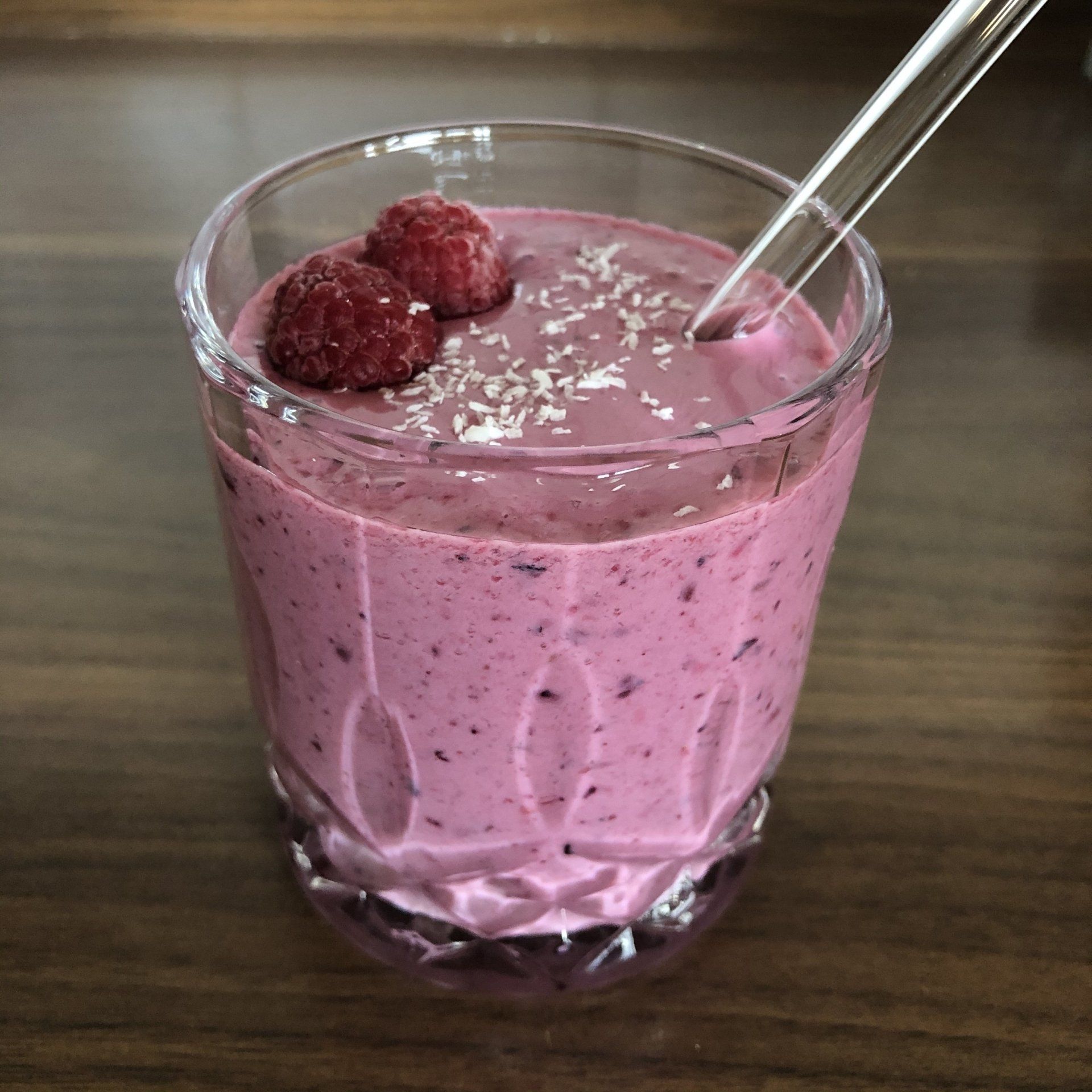 - Fill your smoothie in a glas and add some shredded coconut if you like.