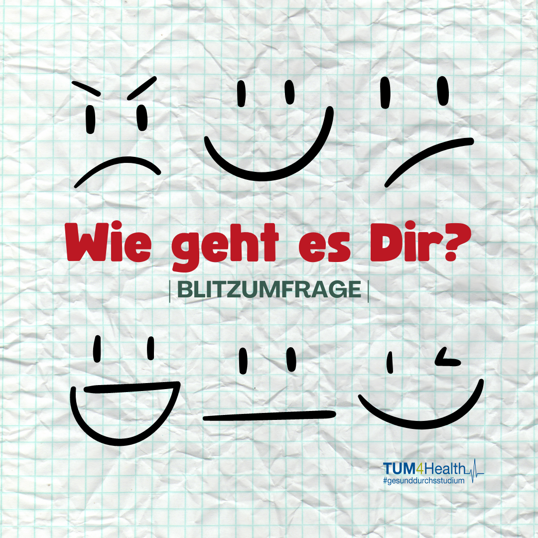 Eine sehr wichtige Frage, die zu selten ernsthaft gestellt wird. Wir möchten euch ein gesundes Studium an der TUM ermöglichen. Nehmt euch 10 Minuten Zeit und beantwortet uns (wieder) diese kurze Umfrage. Neben dem Wohlbefinden, wird diesmal auch euer Bedarf an tabuisierten Themen eruiert. Sollen hierzu neue Informationsplattformen angeboten werden?