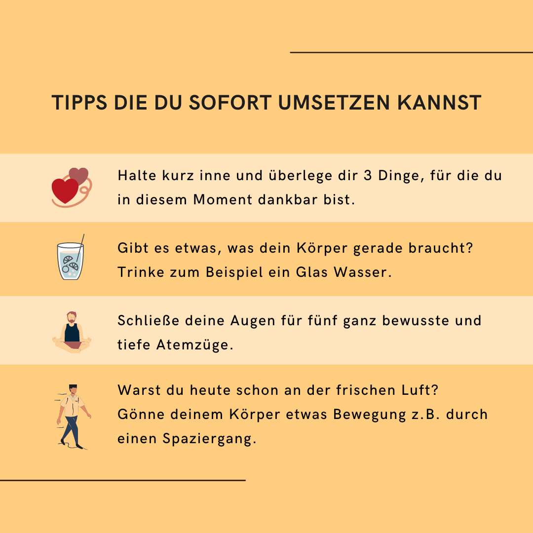 - Mache dir einen Screenshot von der Tabelle, drucke sie dir aus oder schreibe ein paar Stichpunkte davon ab, sodass du sie im Verlauf der Woche immer griffbereit hast.