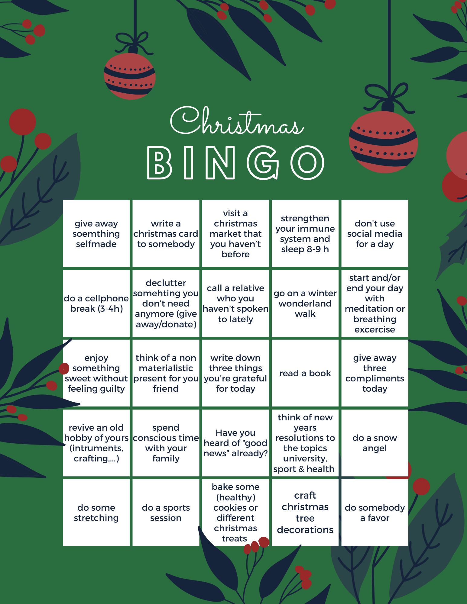 Many people associate the Christmas season with stress. No wonder: Finding presents, baking, decorating, cleaning, spending time with family, friends and so on... It is especially important to take a break now and then. Breathing or mindfulness exercises can help you to consciously focus on nothing other than your breathing and help you to literally take a breath. There are lots of guided exercises online. We have put together a few for you that are suitable for beginners. Breath- and Mindfulness meditations selected.