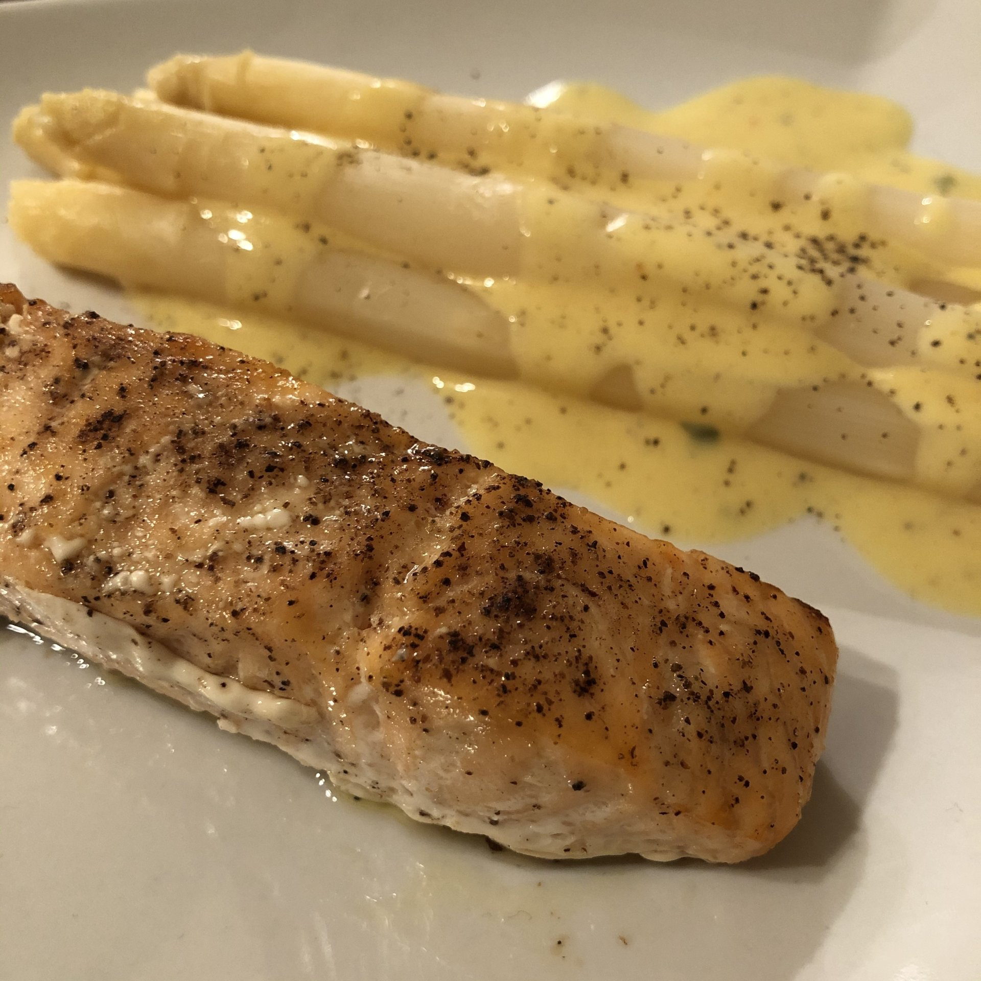 - Serve the asparagus with some sauce hollandaise and salmon.