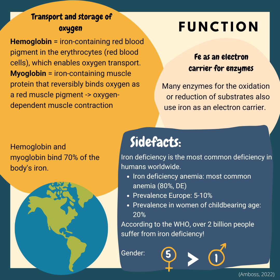 Iron is one of the trace elements and is therefore only present in the body in small amounts. Nevertheless, iron is essential for cellular respiration, for example, and can lead to deficiency symptoms if the supply is insufficient!