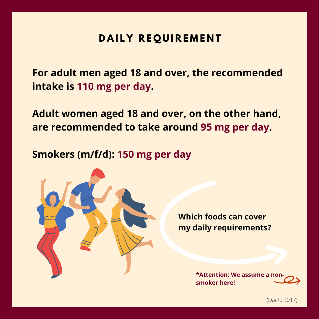 Often it is not necessary to resort to nutritional supplements, but only to fresh fruit and vegetables to cover the daily requirement!