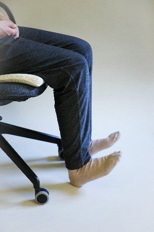 Stelle beide Füße auf den Boden und drücke die Zehenspitzen in den Boden (Fersen anheben). Löse dann die Spannung und drücke nun wiederum die Fersen in den Boden. Hebe dabei den Vorfuß an. Wiederhole den Vorgang mehrmals und versuche einen fließenden Wechsel.